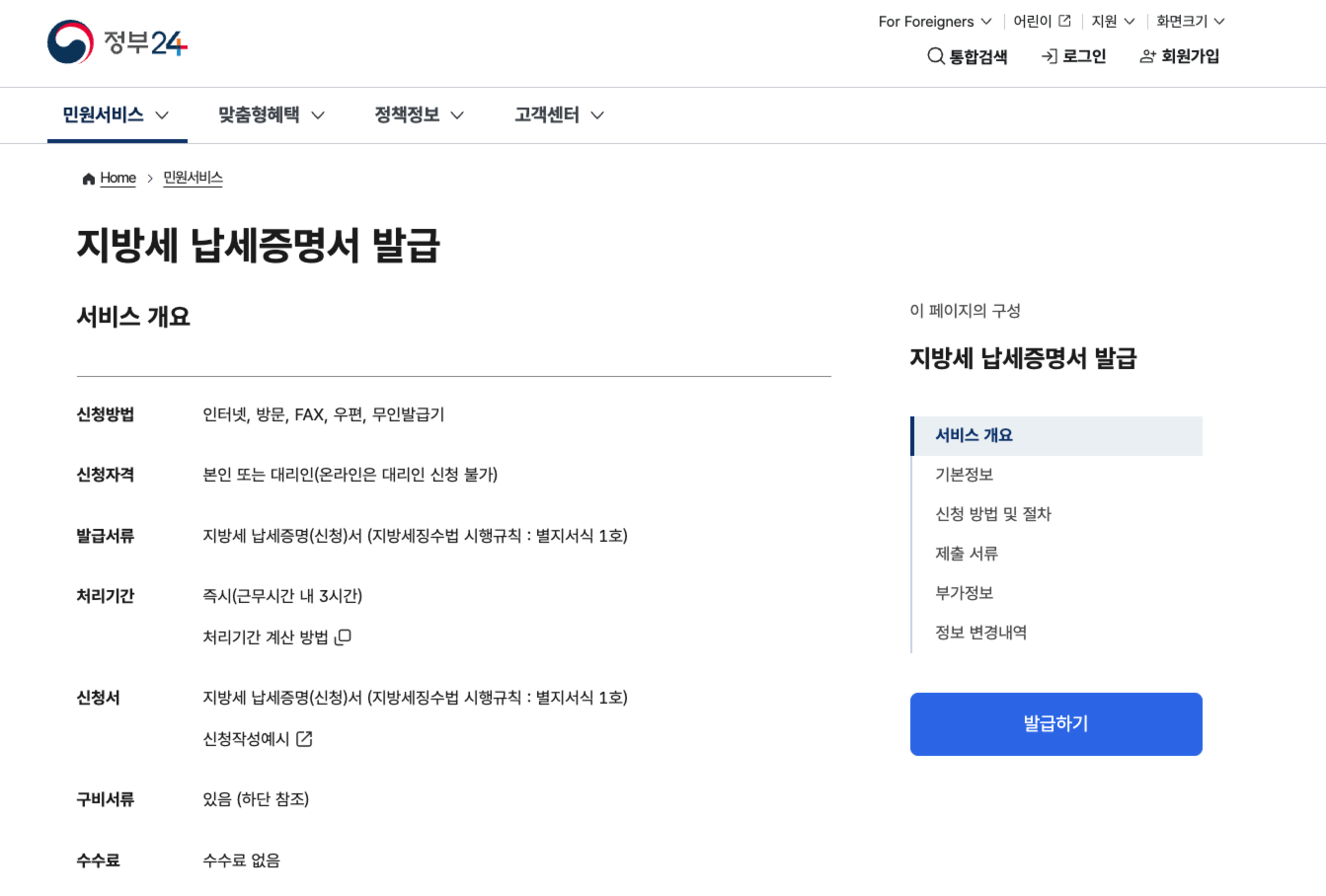 즉, 세금 체납 여부를 공식 증빙해야 하는 상황에서는 반드시 지방세 납세증명서가 필요합니다.