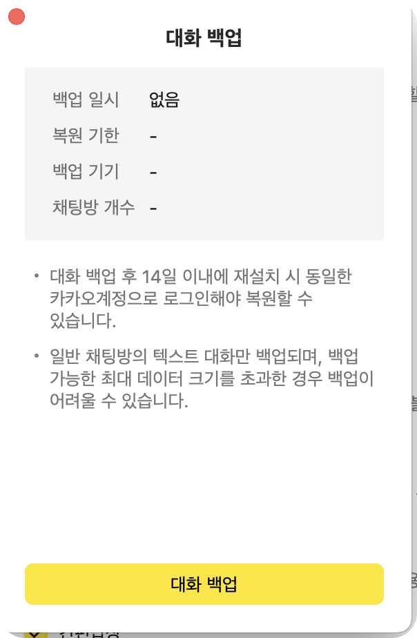 - [대화 백업하기] 버튼 탭