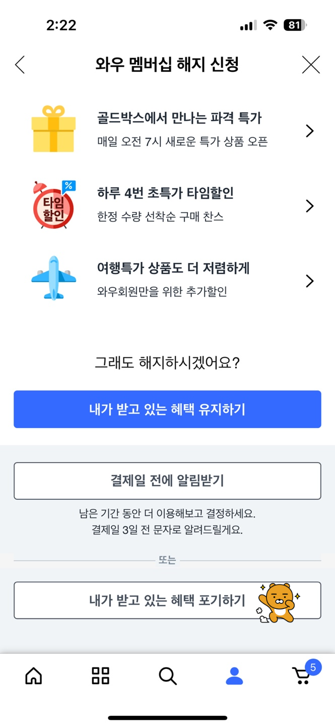 2. 쿠팡 와우 멤버십 자동 결제 해지 방법