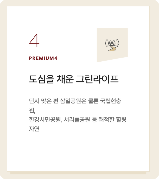- 쾌적성: 삼일공원 인접으로 도심 속 녹지 환경 확보.