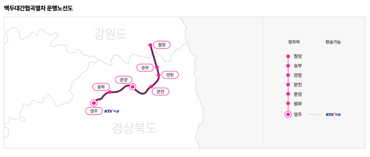- 예매는 코레일톡, 코레일 홈페이지, 여행사 패키지로 가능